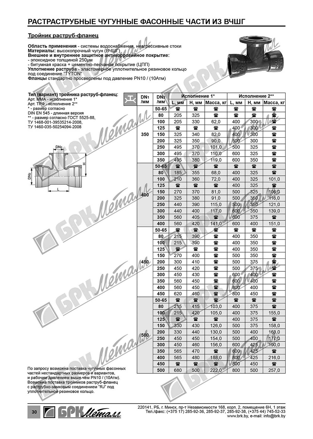 Раздел: Каталог продукции, Раструбные чугунные фасонные части из ВЧШГ. Страница 30 Раздел: Каталог продукции, Раструбные чугунные фасонные части из ВЧШГ.