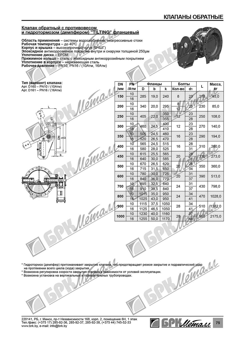 • • Клапан обратный с противовесом и гидротормозом (демпфером) ”TILTING“ фланцевый