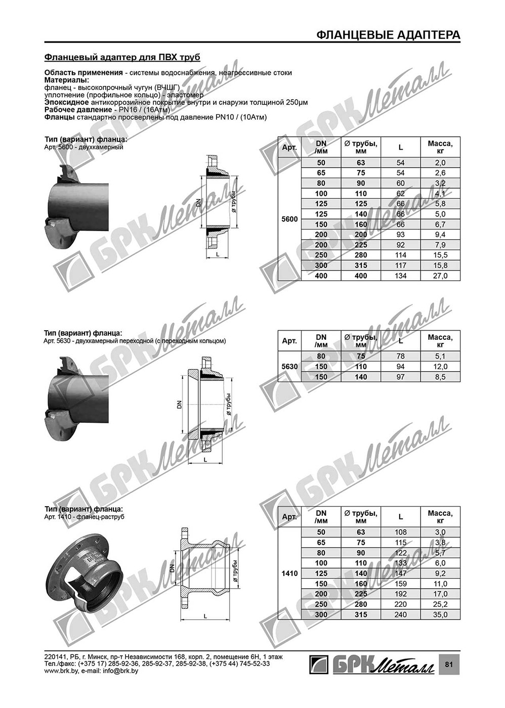 • • Фланцевый адаптер универсальный для чугунных, стальных, ПВХ и асбестоцементных труб