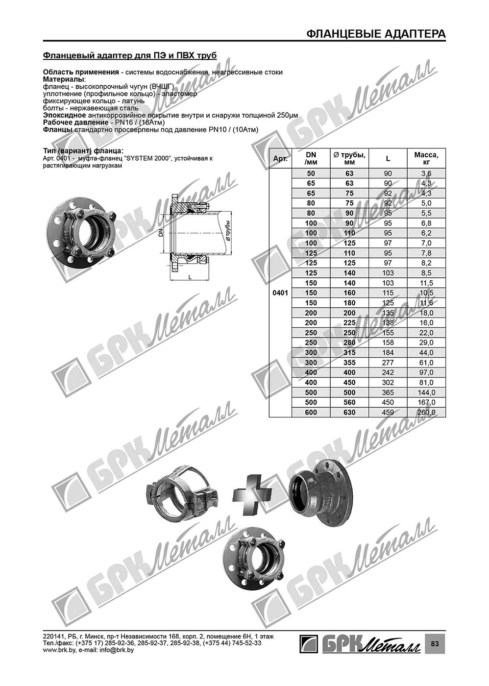 • • Фланцевый адаптер универсальный для чугунных, стальных, ПВХ и асбестоцементных труб
