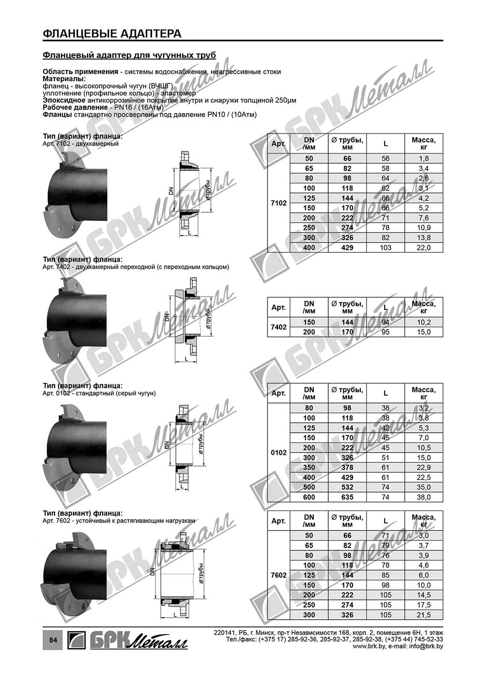 • • Фланцевый адаптер универсальный для чугунных, стальных, ПВХ и асбестоцементных труб